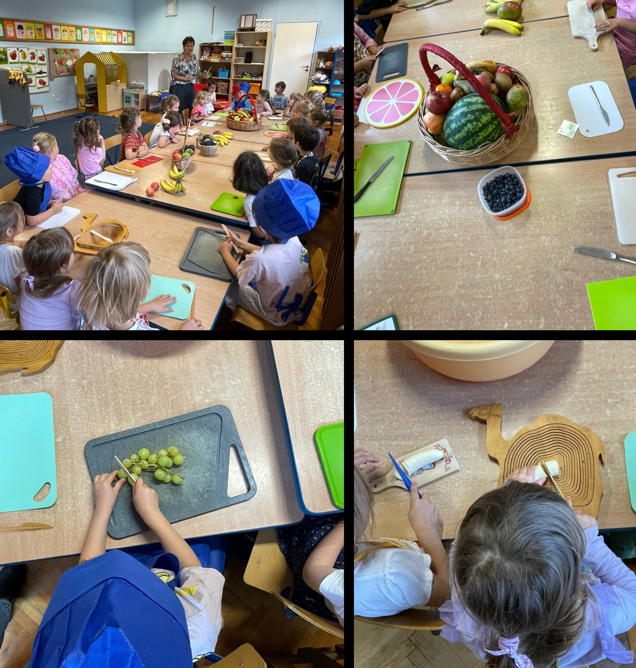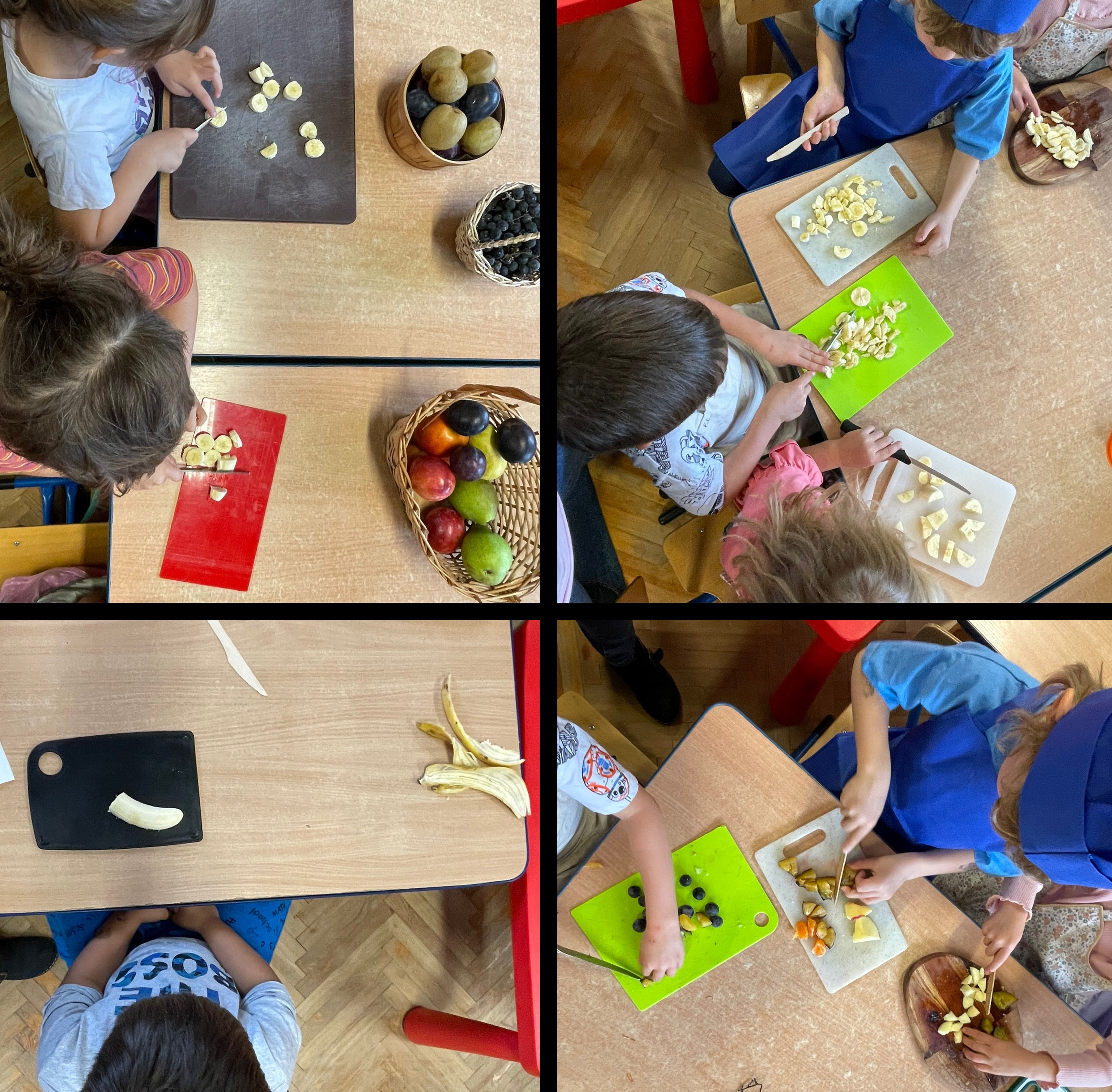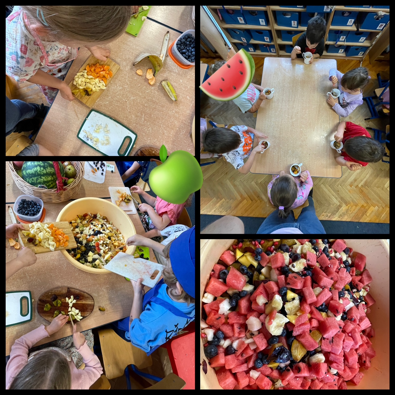 W piątek 19.09.2025 dzieci z grupy III samodzielnie robiły sałatkę z przyniesionych z domu owoców. Były bardzo zaangażowane i chętnie wykonywały polecenia nauczycielek. A sałatka wyszła bardzo dobra!