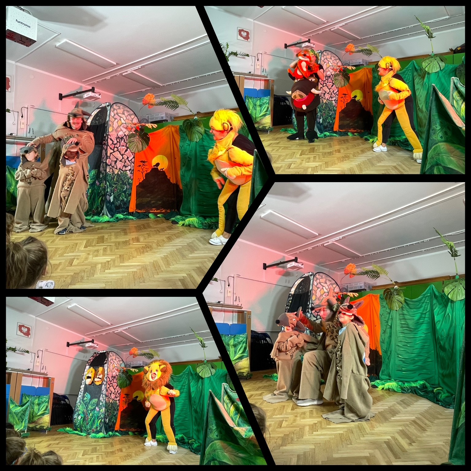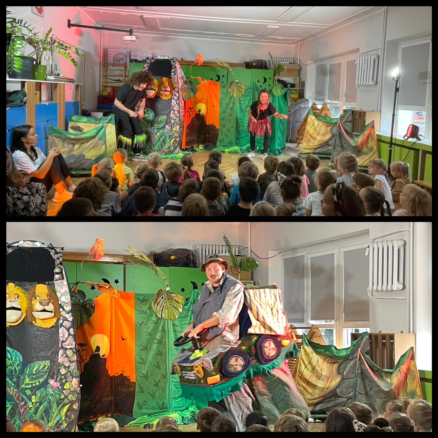 Teatrzyk, który dzieci oglądały 22.09.2025 nosił tytuł: "Lwi król". Dzieci z wielkim zainteresowaniem oglądały przedstawienie i z ogromnym zaangażowaniem pomagały małemu lewkowi odnaleźć rodziców.