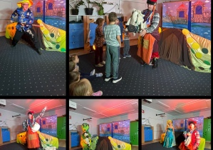 W bardzo przystępny i zabawny dla dzieci sposób aktorzy zapoznali dzieci z legendą o zgładzeniu smoka. Oczywiście jak zawsze dzieci też brały udział w realizacji przedstawienia.